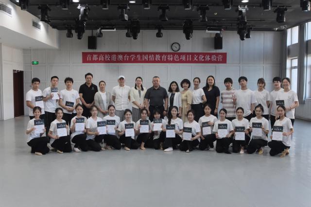 在北京市教委的大力支持下,由北京舞蹈学院主办的首都高校港澳台学生国情教育特色项目舞蹈文化体验营于7月10日-14日在我院举行。来自中国传媒大学、北京语言大学、北京农学院、中国戏曲学院等各高校不同专业的港澳台学生及内地学生共26位学员参与了这次为期五天的文化体验营活动。北京舞蹈学院党委副书记、院长许锐出席开营仪式并讲话,他表示作为北京市高校港澳台学生国情教育特色项目,学院对此次活动高度重视,为体验营配备了高水平的师资队伍,希望来自各个高校的港澳台和内地同学能在体验营中近距离了解中国传统文化,为各高校的港澳台同学搭建一个交流的平台。市教委港澳台办副主任胥丹丹,我院党委常委、副院长惠彤,创意学院党总支副书记白凌,副院长张永庆出席闭营仪式并为学员颁发结业证书。