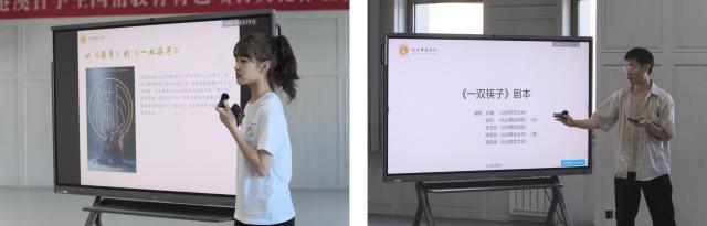 2023年北京高校港澳台学生国情教育创演项目《一双筷子》创作组主要成员李晨、刘彬竹、乔玉新从不同角度汇报了《一双筷子》创作的进展情况并做结营汇报。